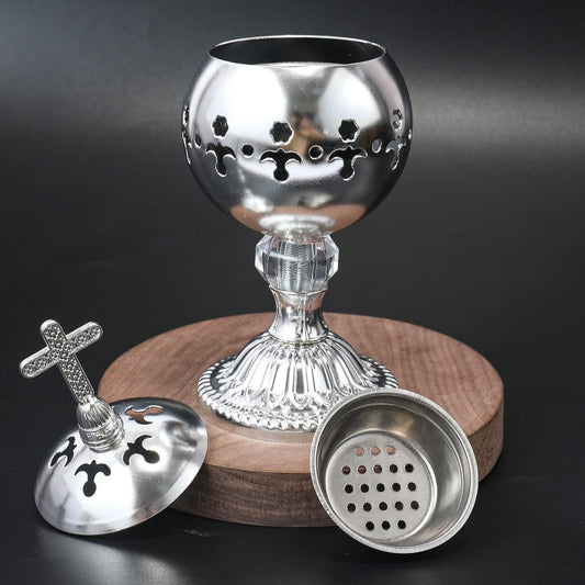 ✝️Jesus bless you✝️🌟 Silver Charcoal Incense Burner Catholic Cross Censer – Brass Plated Distiller for Church & Home 🌟